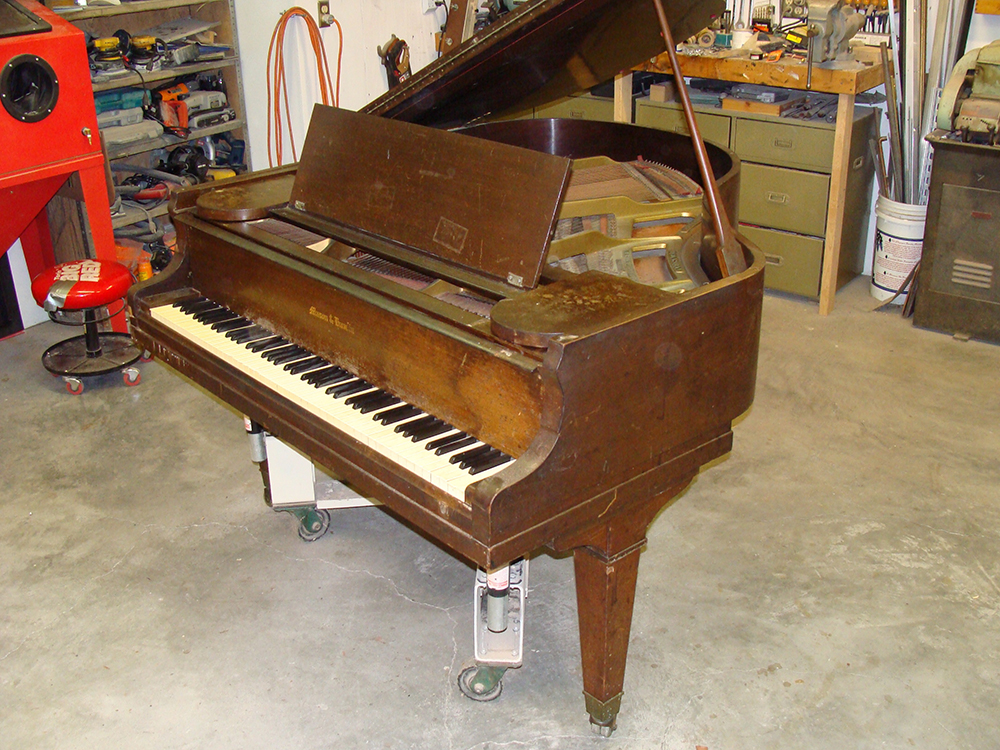 Here is a 1929 Mason & Hamlin grand piano that spent many years in a church fellowship hall. It wasn’t treated very kindly.
